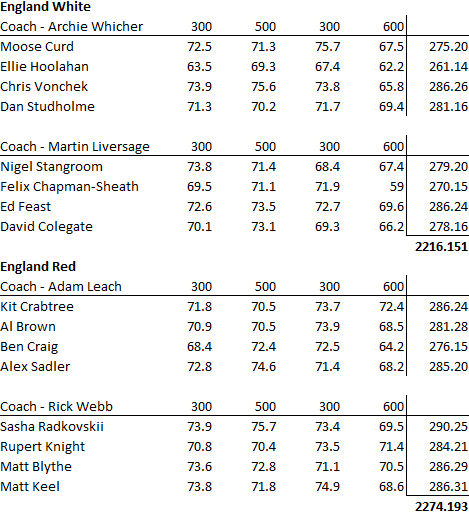 A very close victory for England Red by 1 point and 2 v’s from NRACI 26 A team.